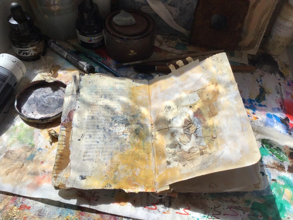 My brush, pen, needle and hands become the conduit through which my emotions pass and revealed on the page are worries and regrets, grief and pain, despair and heartache. But also joy and hopefulness, love and gratitude. The journals we create are personal, deeply honest and truthful. They are reflections of moments in time.