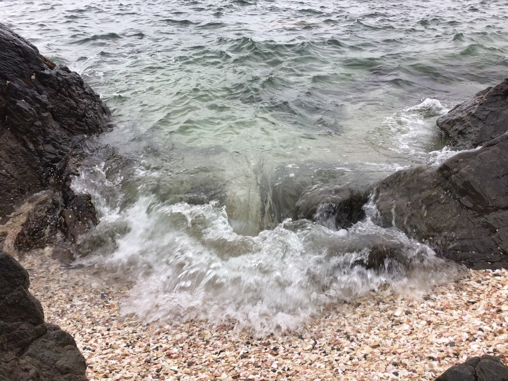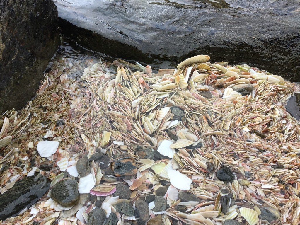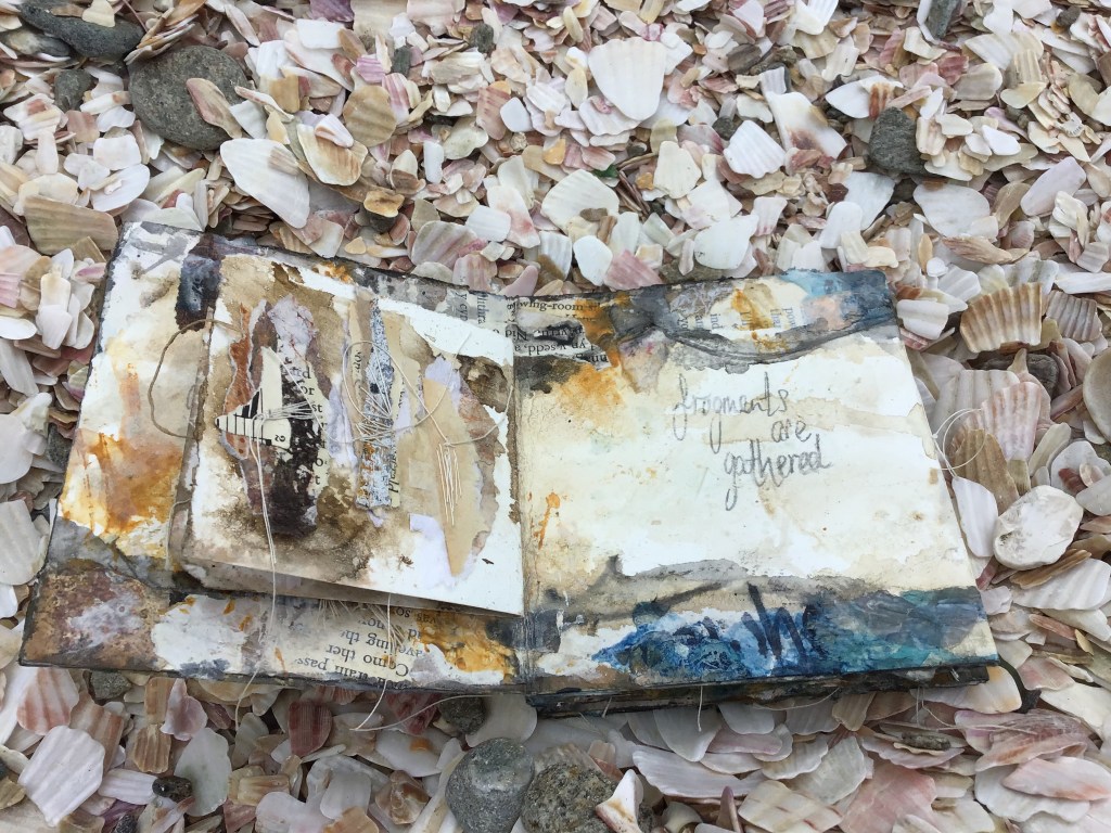 Looking out at the wind whipped waves I see white horses beginning to prance on the loch. Clouds are sweeping in and soon there will be rain. For now though I am sitting on a little beach that is made up almost entirely of shell fragments. Mostly they lie in loose swathes between the rocks and pebbles softly crunching beneath your feet. Others however have been shaped by the rhythm of the sea and have come to rest in beautiful patterns, laid out like a music sea score. A gathering of fragments.