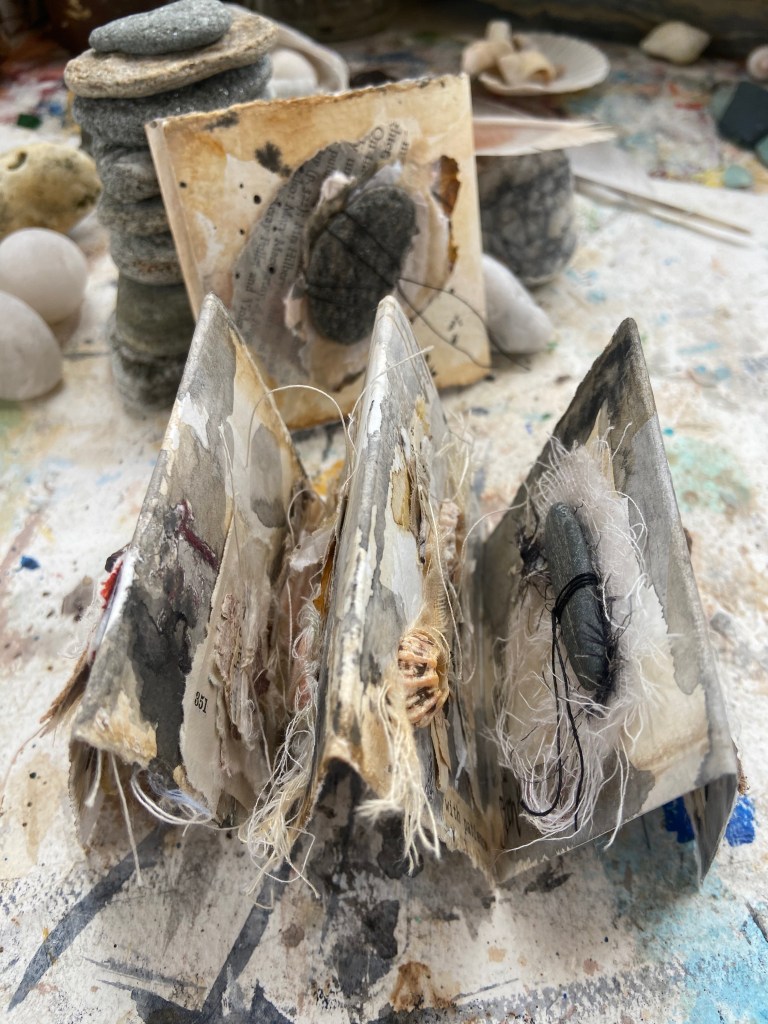 Later on the boat I empty my pockets of stones and shells. These things I gather are reminders of the wild wonder of the world. The silent beauty. The elusive spirit. I try to capture it by drawing and painting and collaging – an attempt to hold onto the wild.